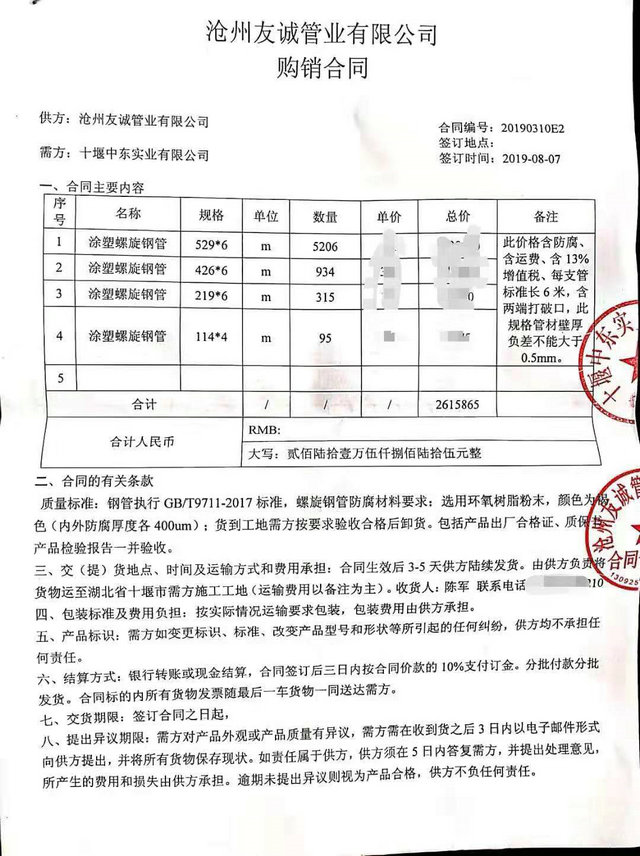 湖北十堰中東實業(yè)有限公司與我公司簽訂的管廊工程用內(nèi)外涂塑復(fù)合鋼管合同,我公司確保質(zhì)量為原則,保障工期為根本,贏得了客戶的好評,通過我們不斷的努力十堰管廊工程我們又合作的另外兩個標(biāo)段